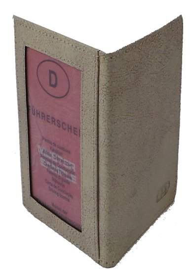 • levá strana: Horizontální průhledná kapsa s vertikální kapsou po celé délce peněženky.
